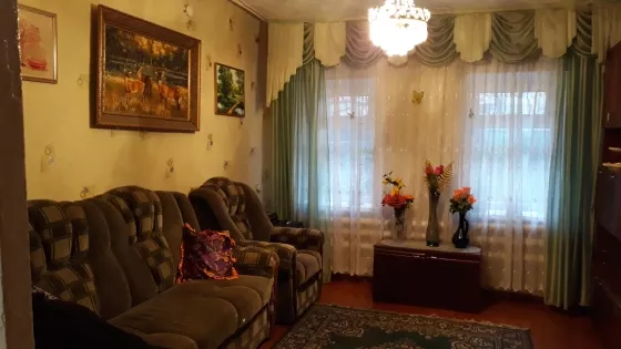Три комнаты на первом этаже, одна большая на 2м этаже.